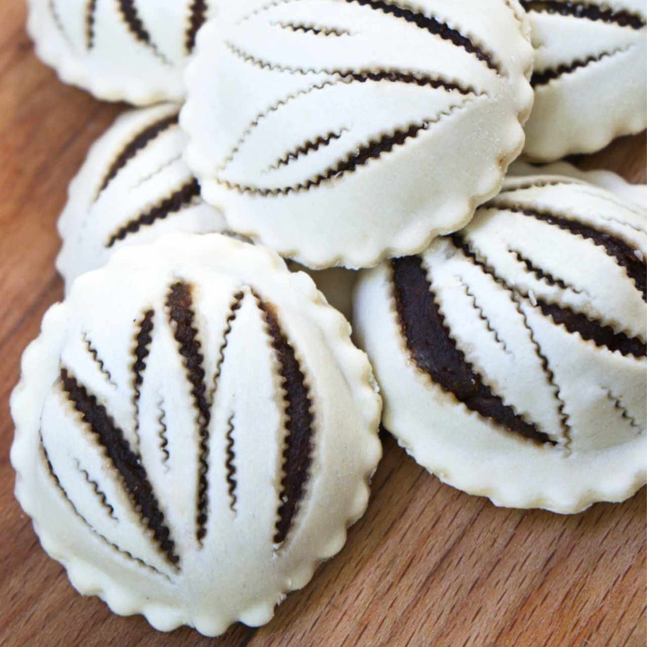 Il Pistiddu è un dolce antico e identitario della zona di Nuoro, preparato da generazioni in occasione della festa di Sant’Antonio Abate e di altre ricorrenze tradizionali. Si presenta come una crostata piatta e rotonda, dal tipico colore giallo paglierino, con una farcitura scura, intensa e profumatissima a base di vino cotto (sapa), scorze d’arancia e miele.